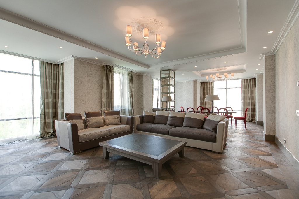 Купить квартиру в ЖК Посольский Дом возможно площадью от 210 до 420 кв.м. Увеличенные окна позволяют естественному свету проникать в жилые пространства в течение всего дня, а высокие потолки 3,6 метров создают ощущение еще большего простора и воздушности. Продуманные планировки позволили функционально разместить общие и приватные зоны для каждого члена семьи.